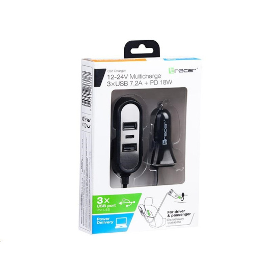 CAR CHARGER TRACER 12-24V MULTICHARGE 3XUSB 7,2A + PD 18W