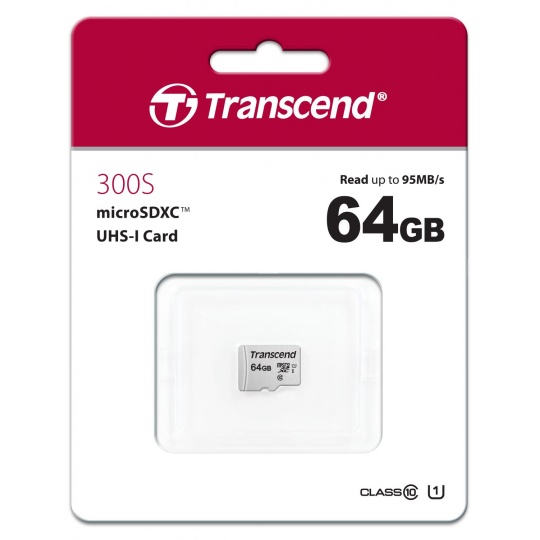 TRANSCEND MicroSDXC karta 64GB 300S, UHS-I U1 + adaptér