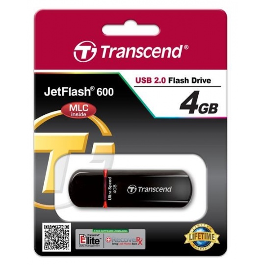 TRANSCEND Flash Disk 4GB JetFlash®600, USB 2.0 (R:20/W:10 MB/s) černá/červená