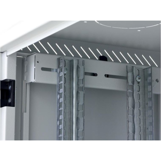 Dva páry 19“ vertikálních lišt jsou plynule nastavitelné v libovolné hloubce rozvaděče. To usnadňuje montáž zařízení i organizaci propojovacích kabelů.