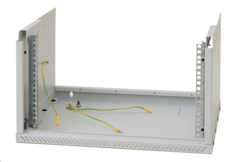 Nastavitelné vertikální lišty: Jeden pár 19“ vertikálních lišt je skokově nastavitelný v přední části rozvaděče. To usnadňuje montáž zařízení i organizaci propojovacích kabelů.