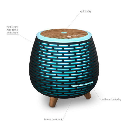 Aromaterapeutická funkce difuzéru přináší mnoho benefitů pro tělo i mysl a velmi pozitivní účinky má i jako zvlhčovač vzduchu. Naplňte jej pouze vodou a pára zvlhčí místnost na optimální hodnotu, aby se vám lépe dýchalo. Zvlhčený vzduch pomáhá i při potížích s astmatem, suchou pokožkou a ekzémy. Když voda klesne pod minimální hranici, difuzér se automaticky vypne, takže ho bez obav můžete nechat puštěný i během spánku.