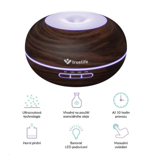 icle id="description_truelife_2019-11-19"> TrueLife AIR Diffuser D5 Dark – Aroma difuzér a zvlhčovač vzduchu Stačí stisknutí jediného tlačítka a aroma difuzér Truelife provoní vzduch v místnosti vaší oblíbenou vůní. Vytvoří vám příjemnou atmosféru pro relaxaci, cvičení jógy nebo meditaci. Stačí do nádržky s ... více