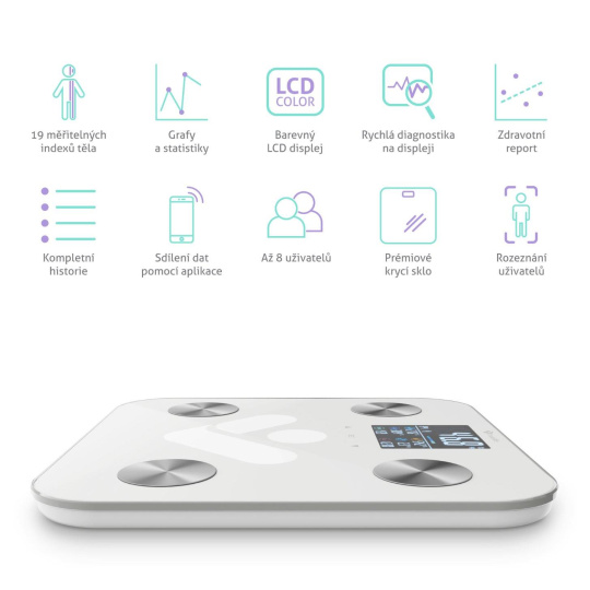 Váha si dokáže zapamatovat údaje až 8 uživatelů, kteří tak mohou sledovat a porovnávat vlastní historii vážení.