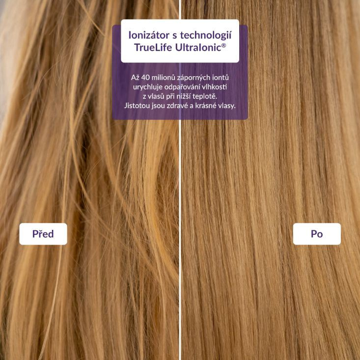 Klasické fény vlasům většinou neprospívají, TrueLife HairDryer D3 pracuje jinak. Tento výkonný přístroj disponuje moderní technologií TrueLife UltraIonic®, která rychle a šetrně vysuší i polodlouhé a dlouhé vlasy. Technologie TrueLife ConstantHeat® zase udržuje konstantní teplotu po celou dobu sušení a zabraňuje tak poškození vlasů. Ty naopak působí zdravěji, jsou lesklé a hebké, ať již využijete jakoukoliv ze 4 přednastavených teplot – studený, normální, teplý či horký vzduch. Na výběr je i ze dvou rychlostních stupňů, normálního či vysokého.
