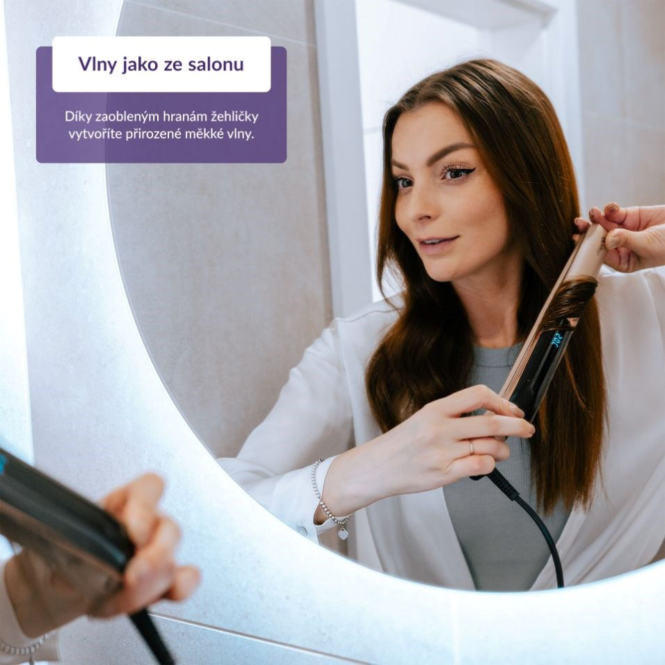 Díky zaobleným hranám lze žehličku využít i k pohodlnému vytvoření měkkých a poddajných vln.