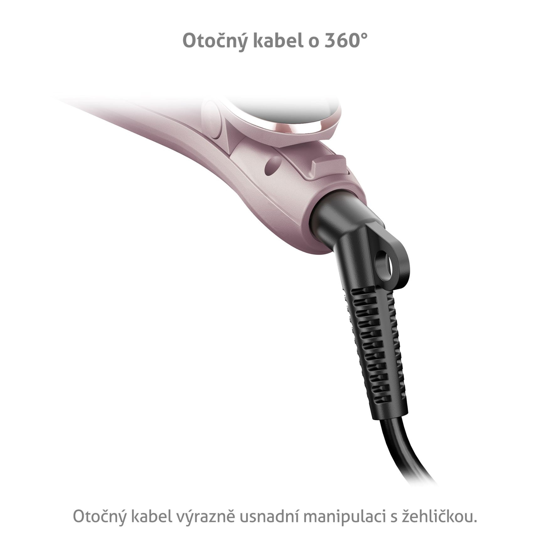 Manipulaci s žehličkou výrazně usnadňuje kabel otočný o plných 360°. Účes si tak vytvoříte mnohem pohodlněji.