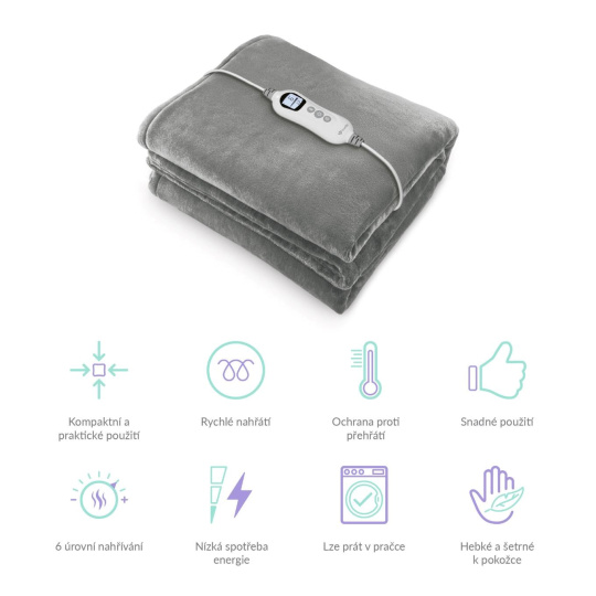 S pomocí funkce rychlého a rovnoměrného nahřívání se deka začne nahřívat ihned. Na požadovanou teplotu je zahřátá do pár minut.
