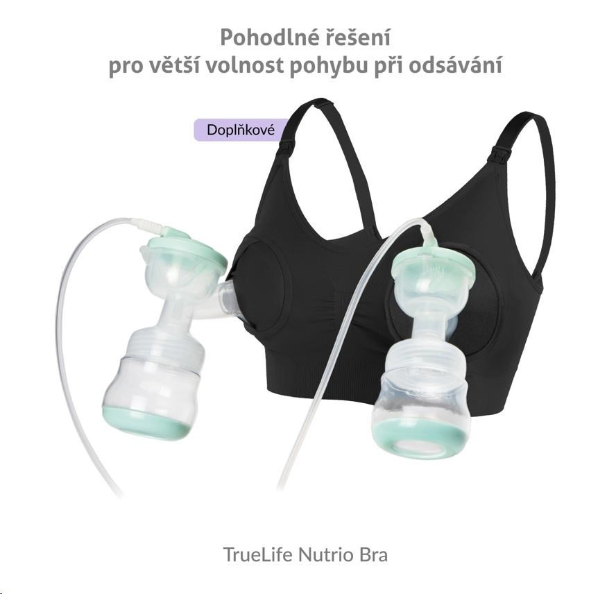 K odsávačce lze dokoupit speciální podprsenku TrueLife Nutrio Bra, která má speciální otvory v košíčkách, do kterých uchytíte obě odsávačky. Vy tak budete mít během odsávání obě ruce volné a budete se tak moci věnovat ostatním aktivitám.