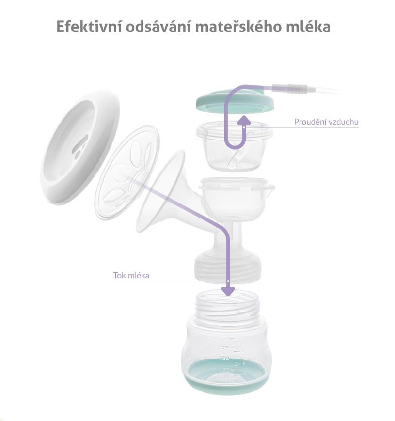 Odsávačka je vyrobena z kvalitního a zdravotně nezávadného plastu a silikonu bez BPA sloučenin.