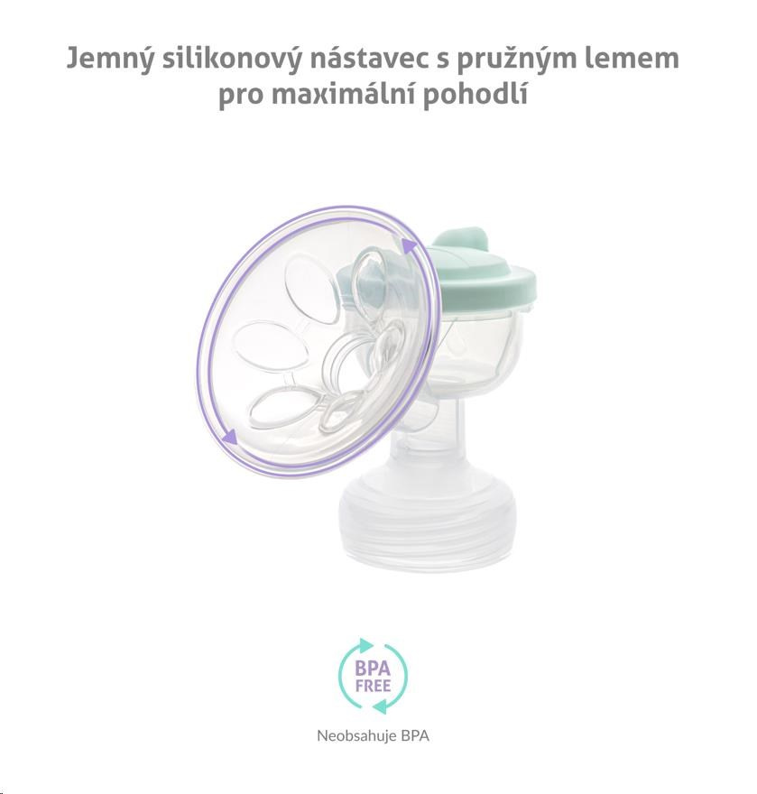 Zjemňující silikonový nástavec usnadňuje odsávání, zvyšuje váš komfort a zmírňuje případnou bolest při kojení.