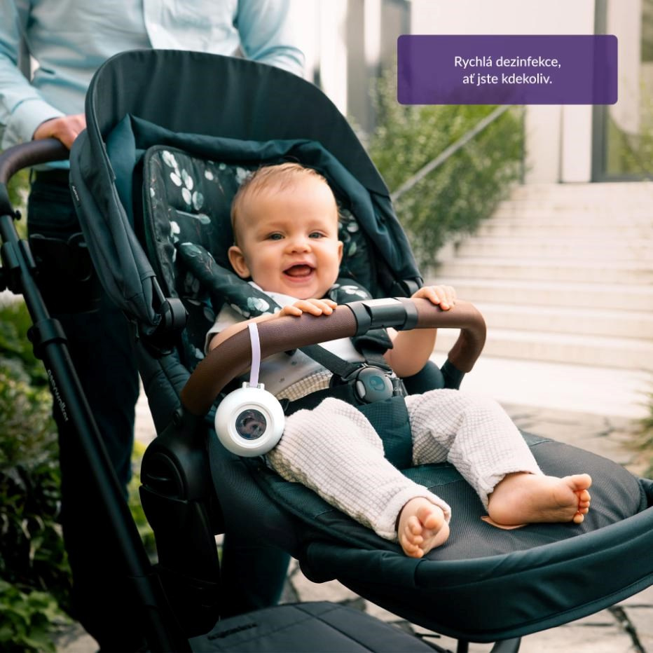 S hmotností pouhých 73 gramů a kompaktními rozměry se sterilizátor vejde do každé tašky nebo kabelky. Silikonové poutko umožňuje snadné uchycení třeba na kočárek, takže ho budete mít vždy po ruce. A když zrovna není potřeba sterilizovat dudlík, zvládne rychle vydezinfikovat i menší předměty, jako jsou šperky nebo drobné doplňky.