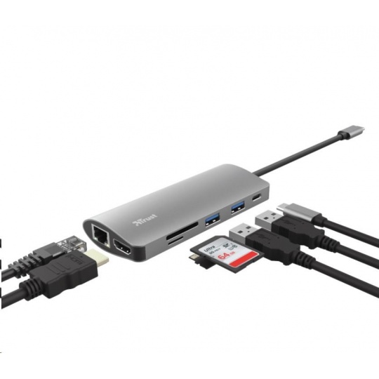 TRUST Dokovací stanIice DALYX USB-C 7v1, 1xHDMI, 1xUSB-C, 2xUSB, 1x RJ45, šedá