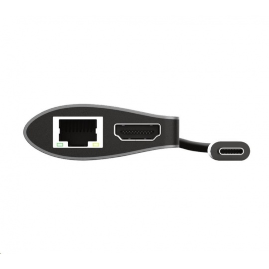 Stylish aluminium multi-port adapter to add HDMI, network, card reader, USB-C and USB ports to your laptop using a single USB-C connection