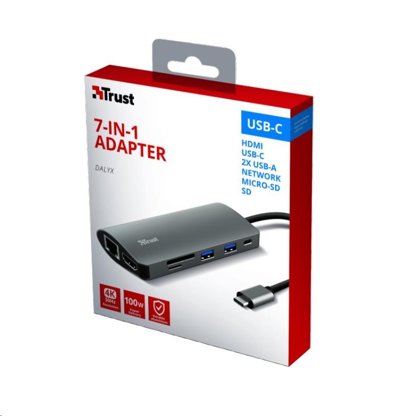 TRUST Dokovací stanIice DALYX USB-C 7v1, 1xHDMI, 1xUSB-C, 2xUSB, 1x RJ45, šedá