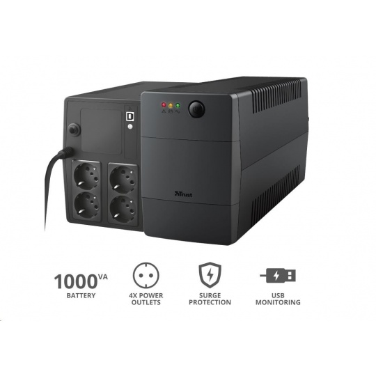 TRUST UPS Paxxon 1000VA UPS with 4 standard wall power outlets