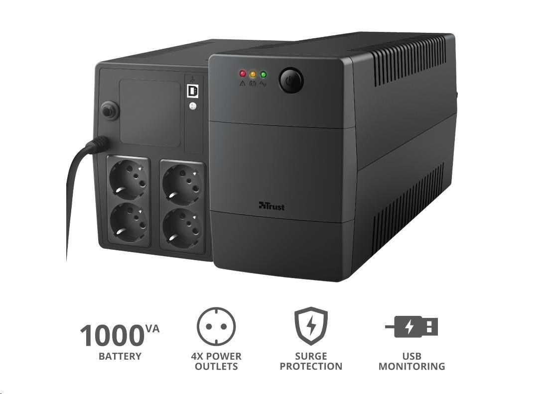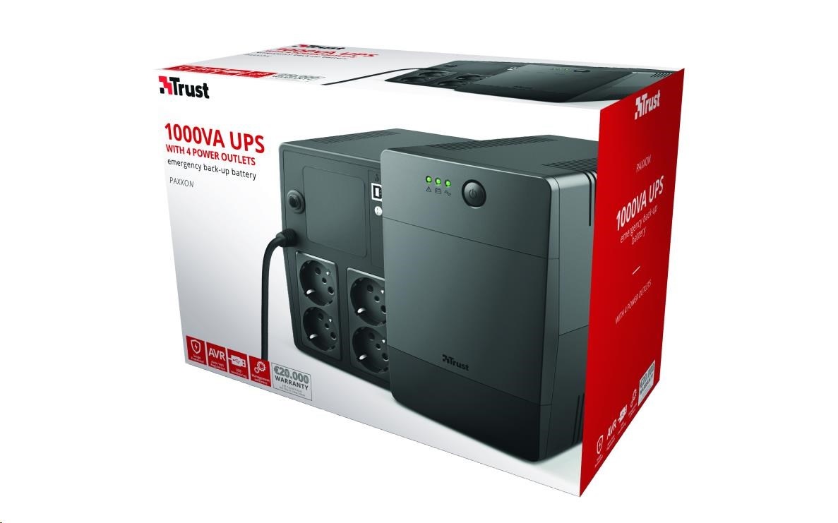 TRUST UPS Paxxon 1000VA UPS with 4 standard wall power outlets