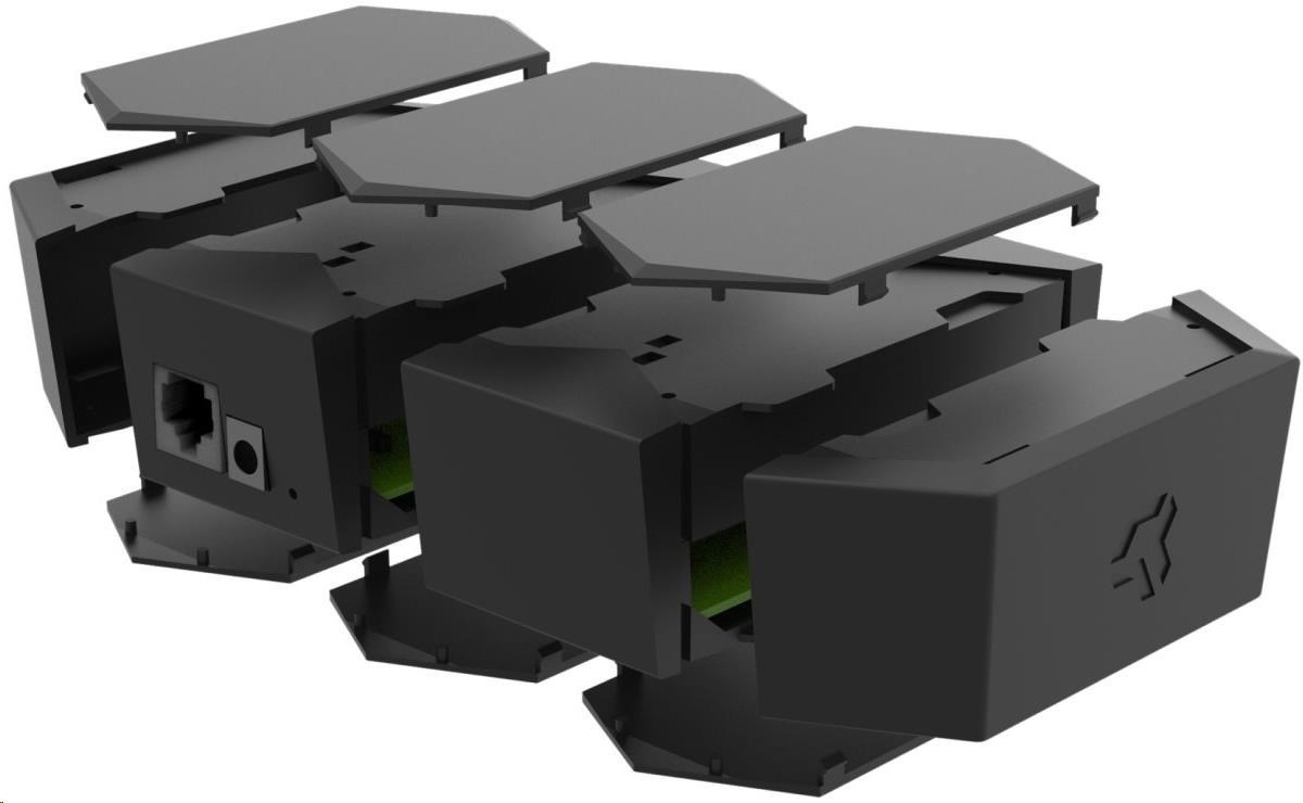 RTMX-N-001-prt-005 je sada dvou kusů (sponí a vrchní část) náhradních spojovacích plastů ve tvaru šestiúhelníků, kterými se spojují jednotlivé části / moduly routeru Turris MOX.