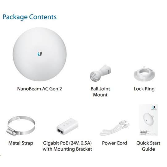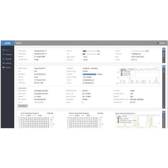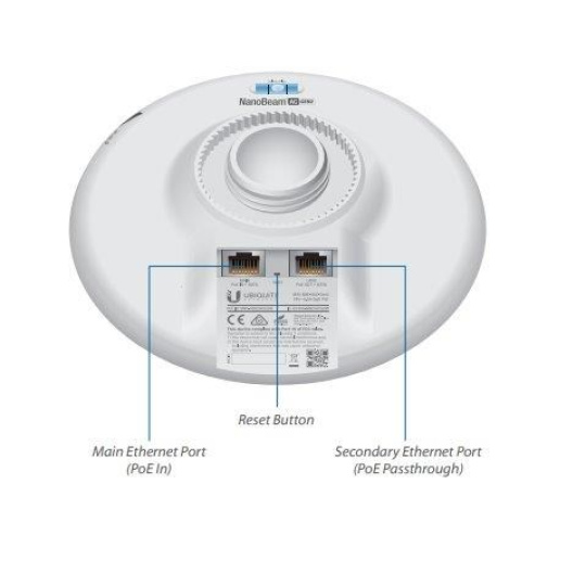 Uvnitř NanoBeamu se nachází výkonný MIPS procesor Atheros 74KC s frekvencí 720MHz, kterému sekunduje 128MB operační paměti typu DDR2 a 8MB Flash paměť. Síťový port podporuje 10/100/1000 Ethernet a lze po něm jednotku napájet pasivním Gigabit PoE 24V/0,5A adaptérem, které je součástí balení (aktivní PoE dle 802.3af není podporováno).