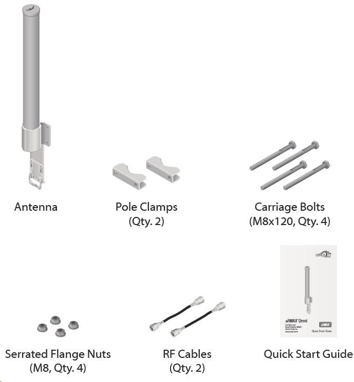 Jedná se o robusní řešení 10dbi všesměrové antény pro přístupové body pracující v pásmu 2.4GHz a využívajících standardu 802.11n v kombinaci s technologií MIMO. Anténa disponuje dvěma RSMA-female konektory. Součástí dodávky jsou dva voděodolné RSMA pigtaily pro propojení s jednotkou Rocket M2, držák pro tuto jednotku a montážní sada na stožár, viz. obr.