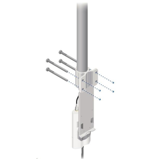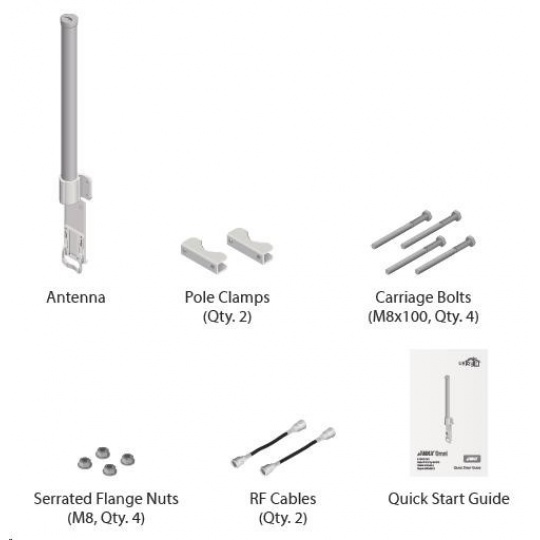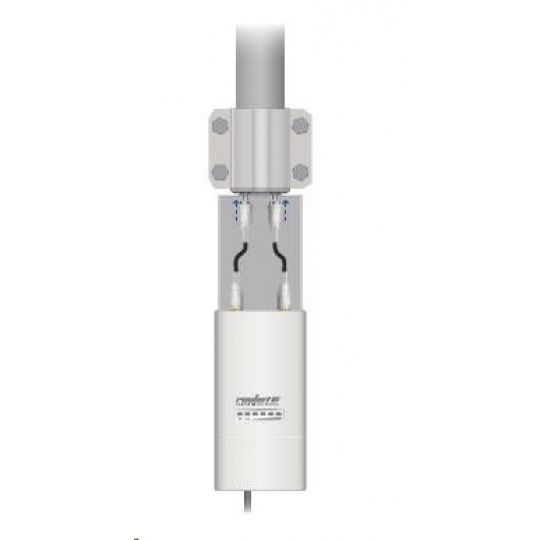 Jedná se o robusní řešení 13dbi všesměrové antény pro přístupové body pracující v pásmu 5GHz a využívajících standardu 802.11n v kombinaci s technologií MIMO. Anténa disponuje dvěma RSMA-female konektory. Součástí dodávky jsou dva voděodolné RSMA pigtaily pro propojení s jednotkou Rocket M5, držák pro tuto jednotku a montážní sada na stožár, viz. obr.