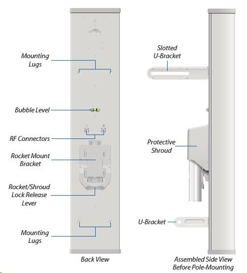 Dvoupolarizační sektorová 15dBi anténa vhodná pro jednotku Rocket M2 (2x2 MIMO). Vyzařovací úhel 120°. Využívá horizontální i vertikální polarizaci, čímž nahrazuje dvě samostatné antény a lze tak jednoduše vytvořit přístupový bod s vysokou propustností.