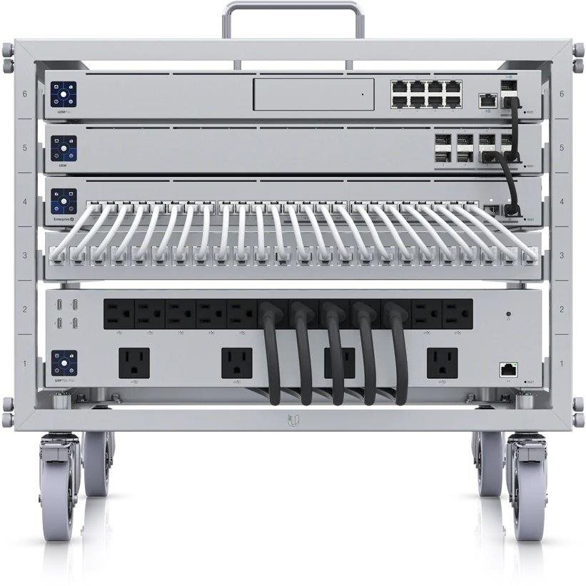 Popis produktu Miniaturní stojanový montážní rám na kolečkách o velikosti 6U, hloubkou 460 mm a speciálním typem bezšroubkového uchycení jednotlivých aktivních i pasivních prvků je kompatibilní s většinou Ubiquiti zařízení. Výhodou rozvaděče jsou uzamykatelná pojízdná kolečka, dodání s jedním 24-portovým prázdným patch panelem a nosnost 35 kg. Velikost rámu bez koleček a horních madel je 519 × 460 × 351mm. Klíčové vlastnosti Výška 6U (351 mm), hloubka 460 mm Beznástrojová montáž Uzamykatelná kolečka Nosnost 35 kg Madla na přenášení Nekompatibilita s těmito zařízeními US-24-250W US-24-500W US-48-500W US-48-750W USG-Pro-4 ES-24-250W ES-24-500W ES-48-500W ES-48-750W ER-8 CKG2-RM ER-RMKIT Obsah balení Datový rozvaděč 24-portový patch panel Technické parametry Fyzické charakteristiky Nosnost [kg]:35 Velikost:19" Použití:Vnitřní Počet "U" pozic:6 Hmotnost [kg]:10,3 Šířka [mm]:519 Výška [mm]:485 Hloubka [mm]:460 Barva:Šedá Obecné Typ rozvaděče:Stojanový.