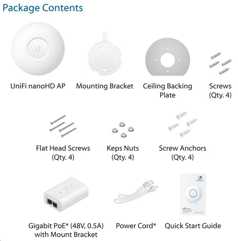 UAP-nanoHD je nejmenší přístupový bod UniFi. Je o 30% menší než verze UAP AC Pro a přibližně stejně veliký jako UAP-AC-Lite.
