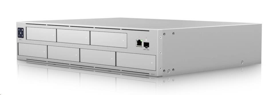 Kamerový síťový rekordér UNVR-Pro je 2U Rackmount NVR zařízení od Ubiquiti Networks s předinstalovanou aplikací UniFi Protect pro nahrávání kamer UVC od Ubiquiti Networks. NVR má výkon pro nahrávání až 60 kamer ve FullHD rozlišení nebo 20 kamer ve 4k rozlišení a uchováním záznamu po dobu 60 dnů. NVR podporuje až 7 diskových pozic pro SSD/HDD s maximální kapacitou 16TB/disk, popdoruje RAID 1 / 5 / 10 pro vyšší spolehlivost uchování dat, má 3" dotykový displej, který s pozdější verzí bude umožňovat i náhled videa, Gigabit LAN port, SFP+ port s podporou rychlostí 1 G/10 Gbps a redundantní napájení pomocí UniFi SmartPower (USP-RPS).