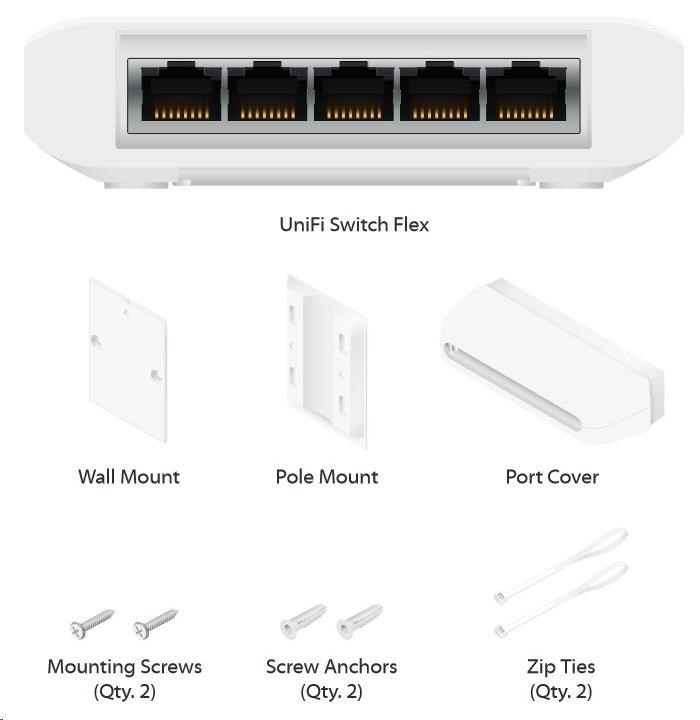 USW-FLEX je 5-portový venkovní Gigabitový switch s možností PoE-In a PoE-Out na 4 portech. Switch umožňuje na výstupních portech aktivní napájení typu 802.3af, což dává celkově 15.4W na každém portu.