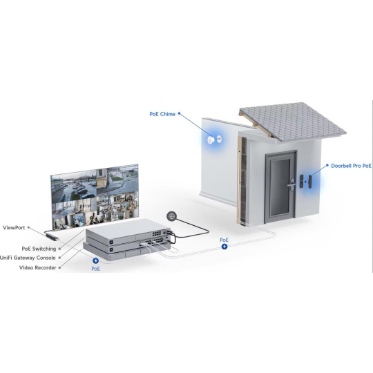 Popis produktu UVC-G4 Doorbell Pro PoE Kit je sada vnitřního zvonku a venkovního tlačítkového videozvonku s přenosem dat pouze po ethernetu. Venkovní jednotka je vybavena přední primární 5MP kamerou a spodní sekundární 8MP kamerou na zobrazení toho, co se nachází na rohožce přede dveřmi. Hlavní kamera domovního zvonku ... více