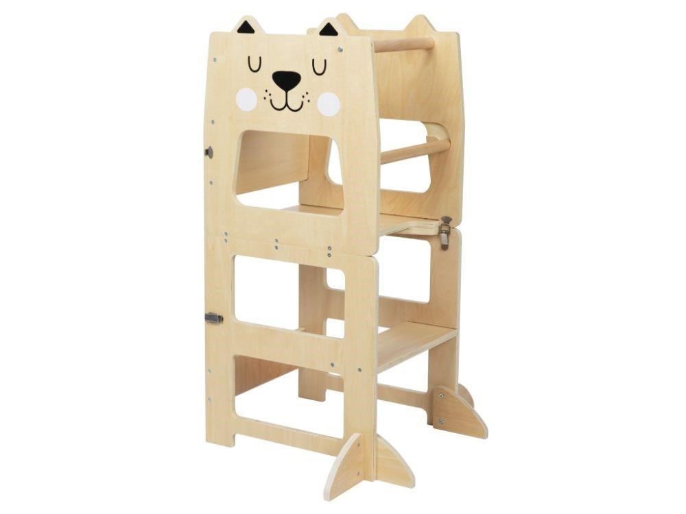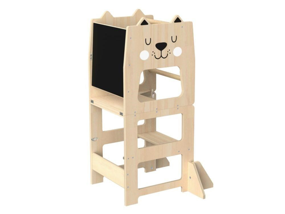 Učící věž pomůže dětem povyrůst a stát se součástí každodenních činností nejen v kuchyni. S její pomocí se dětí mohou zapojit do dospěláckých činností a pomáhat mamince při vaření nebo tatínkovi při kutění v dílně. Učící věž pro děti skvěle poslouží i v dětském pokoji nebo koupelně, kde vede děti k samostatnosti. S pomocí schůdků si děti podají oblíbenou pohádkovou knížku, umyjí si ruce v umyvadle, podají si kartáček na zoubky, dosáhnou na hračky, na které by ze země nedosáhly. Tento všestranný pomocník se snadno přemění v dětský stoleček se židličkou, u kterého mohou děti tvořit i posvačit a jeho součástí je i tabule, na kterou mohou děti malovat a psát.