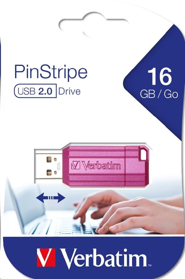 VERBATIM Flash Disk 16GB Hi-Speed Store 'n' Go, Pinstripe, USB 2.0, Hot růžová