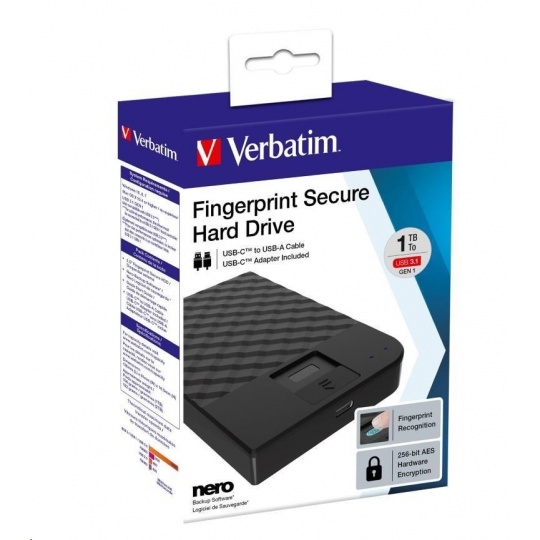 VERBATIM HDD 2TB Fingerprint Secure Portable Hard Drive, Black GDPR