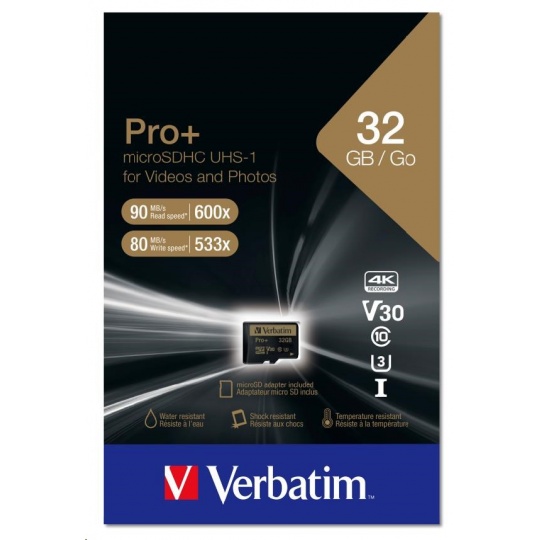 Verbatim Pro+ microSD memory Cards are water resistant & shock resistant.