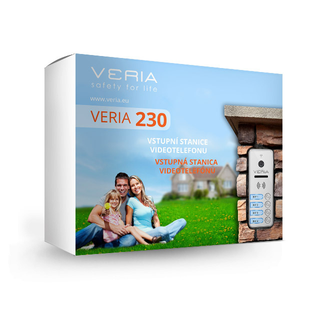 Montáž jednotky je díky dodávanému spojovacímu materiálu snadná a rychlá. Jednotku lze upevnit na rovný povrch, nebo pod úhlem 30° s pomocí kovové konzole, která je rovněž součástí balení. Vstupní kamerová jednotka VERIA 230D je kompatibilní s monitory videotelefonů VERIA 7070, VERIA 7076 a VERIA 7077.