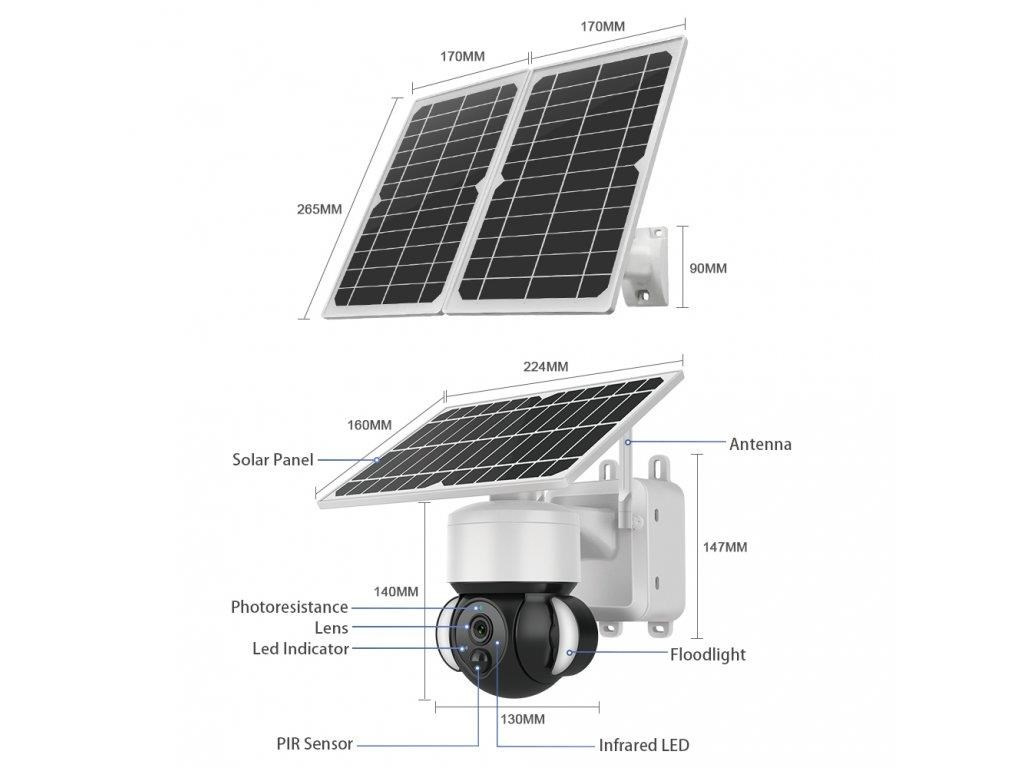 - Napájení pomocí 3 solárních panelů s výkonem až 22W