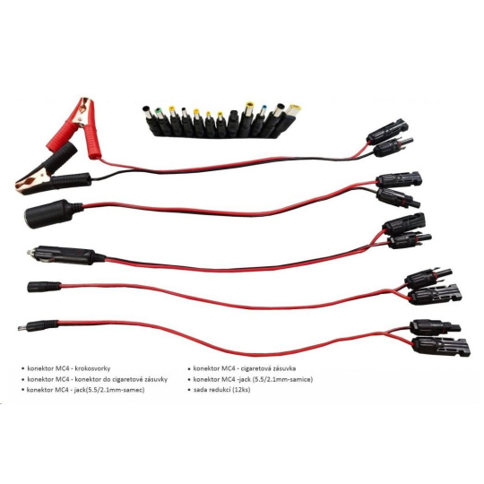 - Velké množství redukcí a konektorů pro neomezené možnosti nabíjení