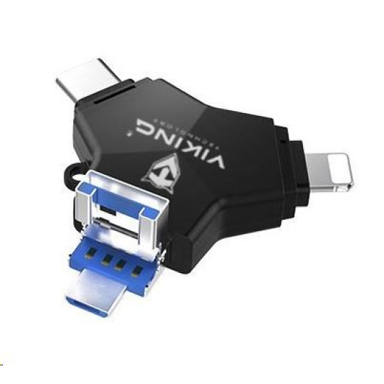 Viking USB Flash disk 3.0 4v1 s koncovkou Lightning/Micro USB/USB/USB-C, 128 GB, černá