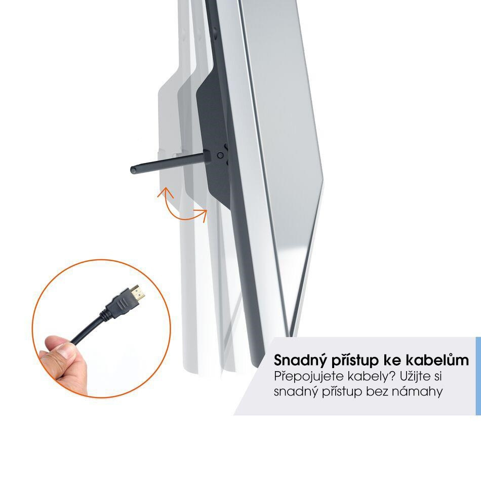 TVM 3403 má pohodlnou polohu pro údržbu. Ta umožňuje přístup ke kabelům nebo portům USB na zadní straně televizoru i po instalaci. Stačí pouze spodní stranu TV odtáhnout od stěny, aniž by bylo třeba TV sundávat z držáku.