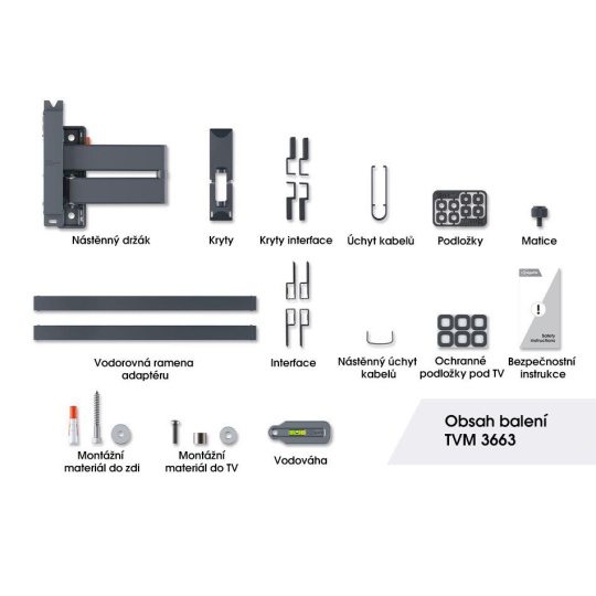 - Snadná instalace s aplikací DrillRight™ AR App - vyznačení všech otvorů pro montáž držáku v požadované poloze TV na stěně