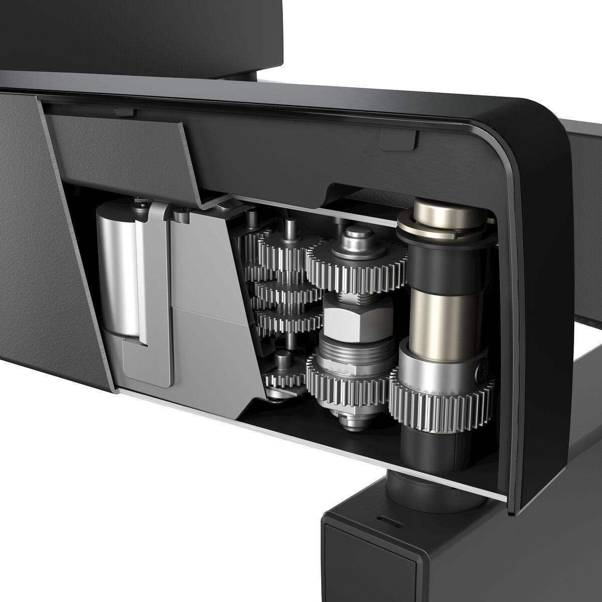 MotionMount má velký rozsah pohybu vpřed díky 4 dlouhým a silným opěrným ramenům. Motorizovaný pohyb umožňuje posunout televizor dopředu až o 72 cm. Díky tomu je nástěnný držák televizoru vhodný i pro montáž do skříně nebo výklenku.