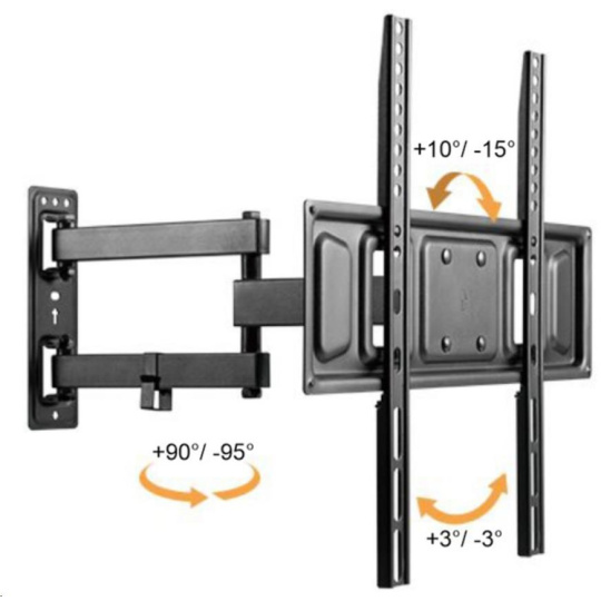 • Výsuvná konstrukce s možností stranového natočení v rozsahu +90°~-90°