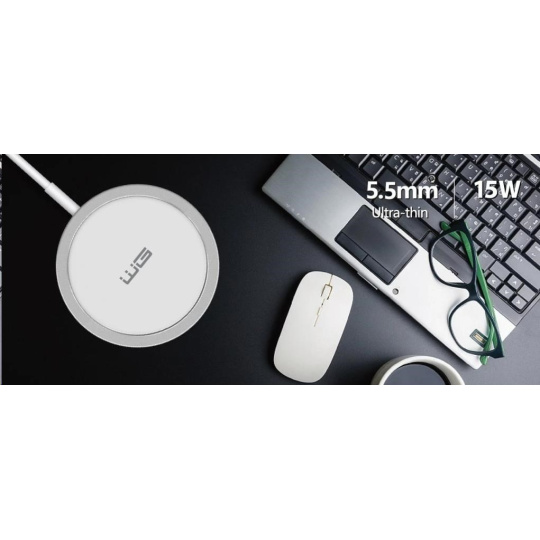 WG - Bezdrátová nabíječka FAST MAGNET 15W, kulatá, bílá