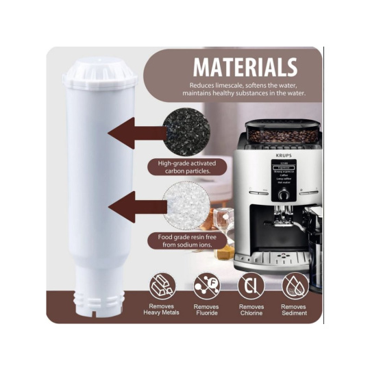 - Jednoduchá instalace: Filtr je navržen tak, aby byl snadno vyměnitelný a kompatibilní s většinou plnoautomatických kávovarů Krups.