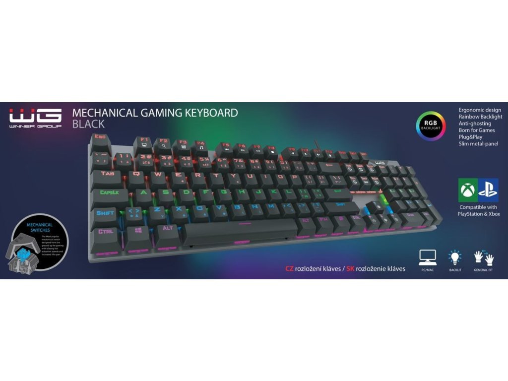 WG - Herní mechanická klávesnice WG, podsvícená, drátová, černá