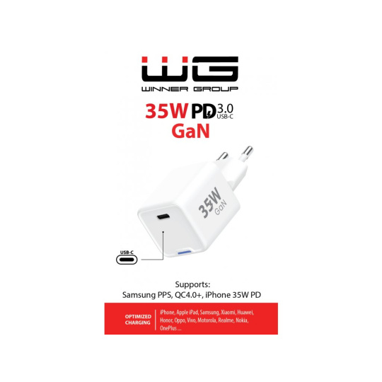 WG - Síťová nabíječka GaN 1x USB-C, PD 35W, bílá