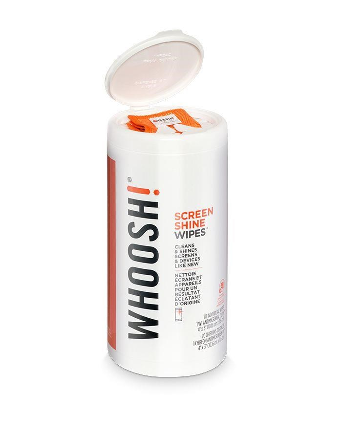 Mikrovláknová utěrka Whoosh! je tkaná z extra tenkého vlákna s antimikrobiální úpravou. Jemné smyčky W! tkaniny spolehlivě zachytí i mikroskopické nečistoty. V kombinaci s přípravky Screen Shine se Whoosh! postará o dokonalou hygienu vašeho mobilu, tabletu a dalších zařízení, kterých se denně dotýkáte. Podrobnější informace najdete zde.Screen Shine vytvoří ochrannou nanovrstvu