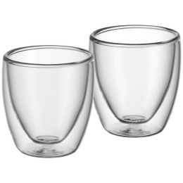 Sklenice na espresso z kolekce WMF Kult představují dokonalou rovnováhu mezi moderními funkcemi a poutavým designem. Dvoustěnná konstrukce termo skla udržuje horký i studený obsah déle v perfektní teplotě - ideální pro širokou škálu použití, od klasického espressa po horké nebo studené dezerty, amuse-bouche a mnoho dalšího - s bezpečným tepelně odolným sklem pro pití bez manipulace, které je chladné na dotek a bez kondenzace.