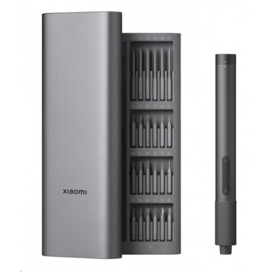 - Obsah balení: 1x šroubovák, 1x pouzdro, 24x šroubovací bit, 1x nabíjecí kabel typu C, 1x manuál